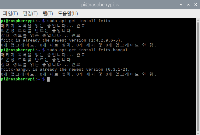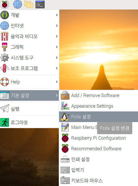 라즈베리파이OS 한글 입력기를 별도로 추가해야한다.